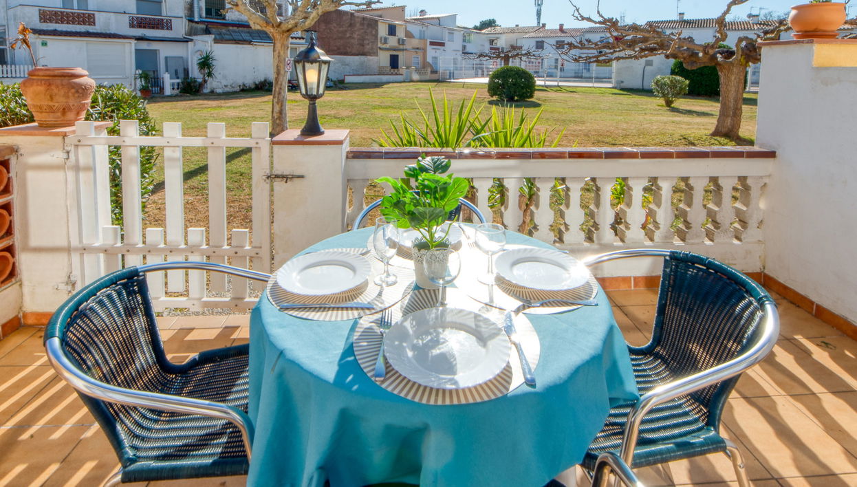 Casa a schiera "Triangulo", semplice su 2 piani. Nella frazione Puigmal, a 2.5 km dal centro di Empuriabrava, posizione tranquilla, soleggiata quartiere signorile, zona a traffico limitato, a 3 km dal mare. In comune: grande, curato giardino (recintato) con prato e alberi, piscina (12 x 8 m, profondità 180 cm, disponibilità stagionale: 01.Giu. - 30.Set.). Piscina per bambini. Negozio alimentare 400 m, supermercato 350 m, ristorante 400 m, bar 350 m, panetteria 500 m, fermata bus 1 km, spiaggia sabbiosa "Empuriabrava" 3 km. Porto turistico 3 km, campo da golf (18 buche) 14 km, scuola di surf 3.2 km, scuola di vela 3.2 km, tennis 550 m, mini golf 2 km, pista ciclabile 1 km. Attrazioni nelle vicinanze: Túnel del viento Empuriabrava 1 km, Parque Acuático Roses 6 km, Casino y festival de Perelada 12 km, Museo Dalí Figueres 15 km, Ruïnes de Empuries 21 km, Monasterio de Sant Pere de Rodes 23 km. La consegna chiavi è presso l‘agenzia Interhome a Empuriabrava. L'accesso al giardino avviene tramite 2 scalini.