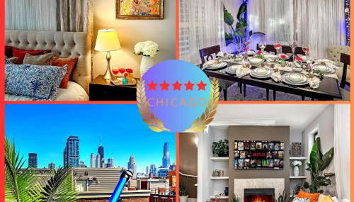 Con vista sulla città, Art Downtown Fulton Market Entire 3 bedroom Home Sleep10 Private Garage Roof EV Tesla prevede un alloggio dotato di giardino e balcone, a circa 1,9 km da United Center.