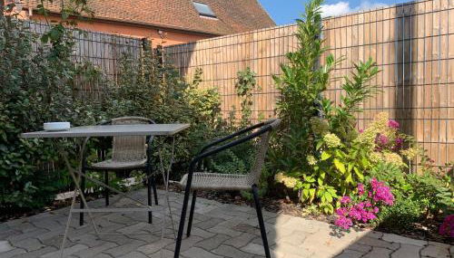 Questo appartamento prevede 1 camera da letto, 1 bagno, lenzuola, asciugamani, una TV a schermo piatto con canali satellitari, una zona pranzo, una cucina con utensili e un patio con vista sul giardino.
