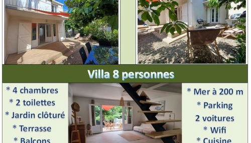 Villa 8 pers, 4 ch, jardin, clim 200m de la plage
