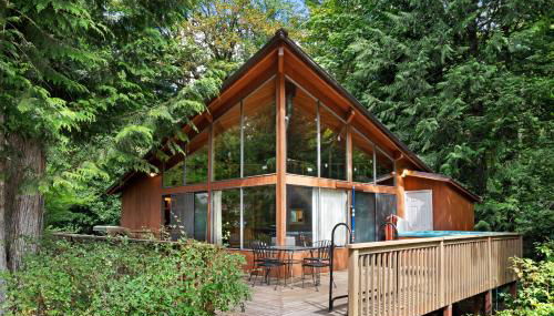 Ubicato a Baring nella regione Washington, l’alloggio Rustic River Paradise - 1 Bed 2 Bath Vacation home in Baring presenta un patio. La struttura offre la vista sulla montagna e sul fiume.