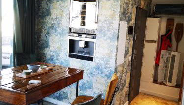 Con un accesso diretto a un balcone, questo appartamento con aria condizionata comprende 1 camera da letto e una cucina con utensili.