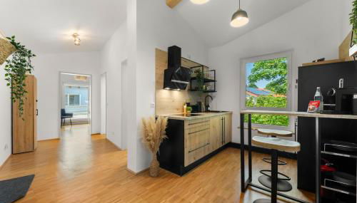 Con vista sul giardino, Flussperle Miesbach - Entspannung pur, direkt an der Schlierach, Vollküche, kostenfreies Parken prevede un alloggio con balcone e macchina da caffè, a circa 46 km da Stazione Ferroviaria di München Ost.