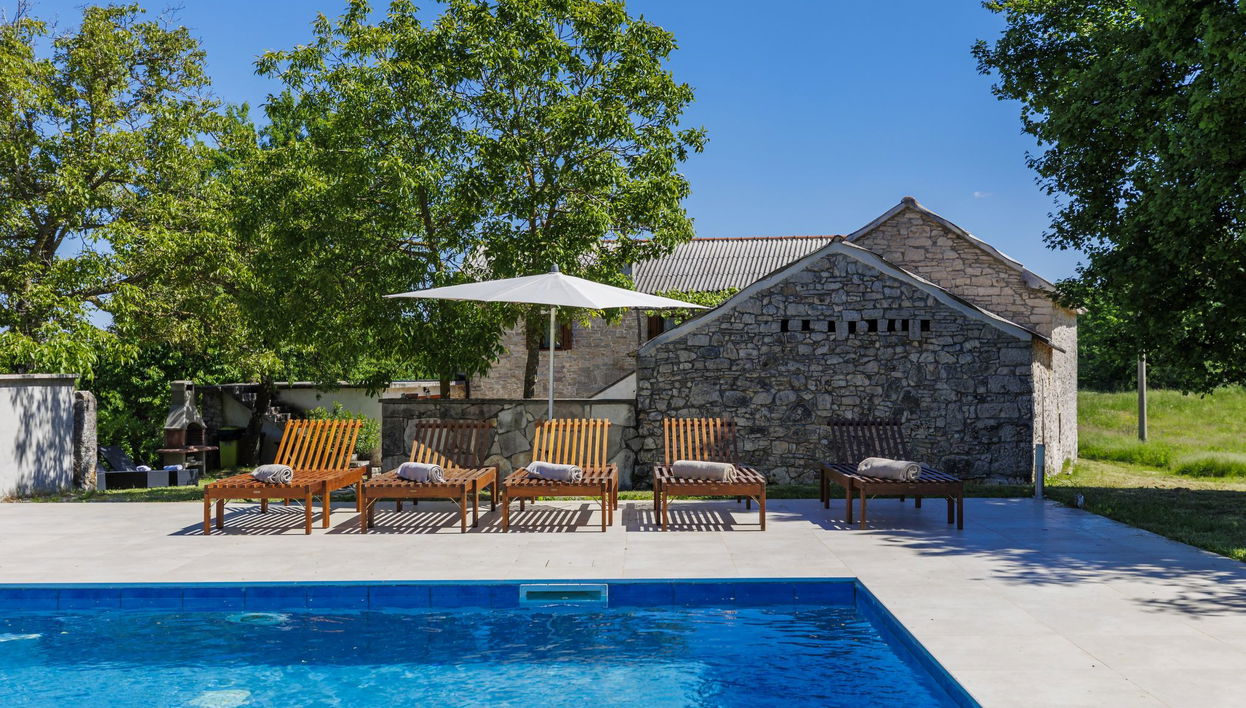 Casa semi-indipendente "Ana", su 2 piani. Nel borgo Veli Ježenj, a 7 km dal centro di Pazin, a 25 km dal centro di Poreč, posizione isolata, a 25 km dal mare. Per uso privato: terreno 3'000 m2, alberi, prato, piscina ad angolo (6 x 4 m, 28 m2, profondità 150 cm, disponibilità stagionale: 01.Mag. - 15.Ott.) con scaletta. Doccia esterna, tennis tavolo, volley, terrazza, barbecue (altalena), pulizia piscina da parte del proprietario/giardiniere. Nella casa: accesso ad internet, lavatrice. Accesso fino alla casa (800 m strada non asfaltata). Parcheggio nella proprietà. Negozio 5 km, supermercato 7 km, fermata bus 6.8 km, spiaggia ciottolosa 25 km.