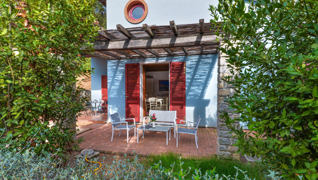 Residence "Mezzo Ortano", accogliente, circondata da alberi. 10 case nel residence. A 2 km dal centro di Rio nell'Elba, a 4 km dal centro di Rio Marina, posizione isolata, tranquilla, a 1.5 km dal mare, a 1.5 km dalla spiaggia, immerso nel verde. In comune: curato giardino terrazzato, 10'000 m2 (non recintato) con piante e alberi. Accesso 150 m di strada (strada non asfaltata). Scalinata fino alla casa. Parcheggio (per 8 auto, coperto, numero posti limitato) nella proprietà, parcheggio pubblico 50 m. Negozio alimentare 2 km, supermercato 4 km, ristorante 2 km, fermata bus 1.5 km, traghetto "Rio Marina" 4 km, spiaggia sabbiosa "Ortano" 1.5 km. Attrazioni nelle vicinanze: Porto Azzurro 15 km, Capoliveri 18 km, Monte Capanne 38 km, Portoferraio 17 km. Prego notare: auto consigliata.