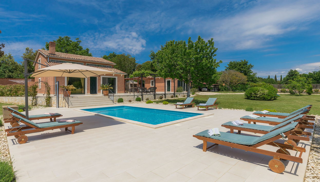 Casa singola "Villa Bernard", adatta ai bambini, piacevole su 2 piani. A 3 km dal centro di Rovinj, posizione tranquilla, soleggiata, a 500 m dal mare, a 500 m dalla spiaggia. Per uso privato: terreno 3'000 m2 (recintato), giardino con prato e alberi, piscina ad angolo (8 x 4 m, profondità 150 cm, disponibilità stagionale: 01.Mag. - 15.Ott.) con scaletta e filtro a elettrolisi. Doccia esterna, pergola (18 m2), mobili da giardino, barbecue, spazio giochi per bambini (scivolo, altalena). Nella casa: accesso ad internet, tappeto elastico, sistema di allarme, lavatrice, asciugatrice. Accesso fino alla casa (550 m strada non asfaltata). Parcheggio presso la casa nella proprietà. Negozio, supermercato 500 m, ristorante 150 m, fermata bus 2.6 km, spiaggia ciottolosa, spiaggia rocciosa, piscina, stabilimento balneare 500 m. Scuola di surf, tennis 500 m, sentieri per passeggiate vicino alla casa 50 m, pista ciclabile 100 m. Prego notare: adatto alle famiglie. Il proprietario non accetta gruppi di giovani. Organizzare una festa non è permesso. L'unità e’ composta di grande casa principale e piccola casa in affitto come una sola unita’.