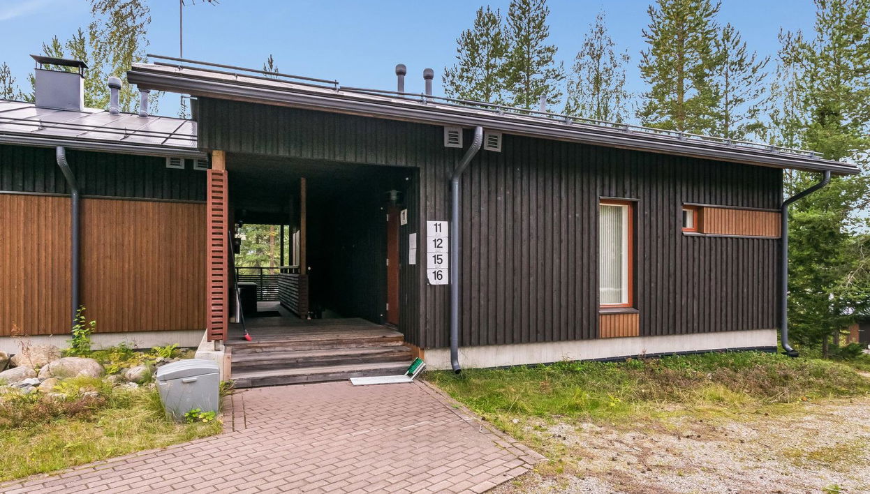 The house is built into the hillside, when apartment Haapala Suites 16 entrance is from corridore of the house, apartment is located on the 1st floor middle in house. Ski maintenance room shared with other apartments. A lockable storage is located in the corridor of the house. Child equipment provided at extra fee, if necessary (high chair, potty and travel bed). The houses has a playground for children.