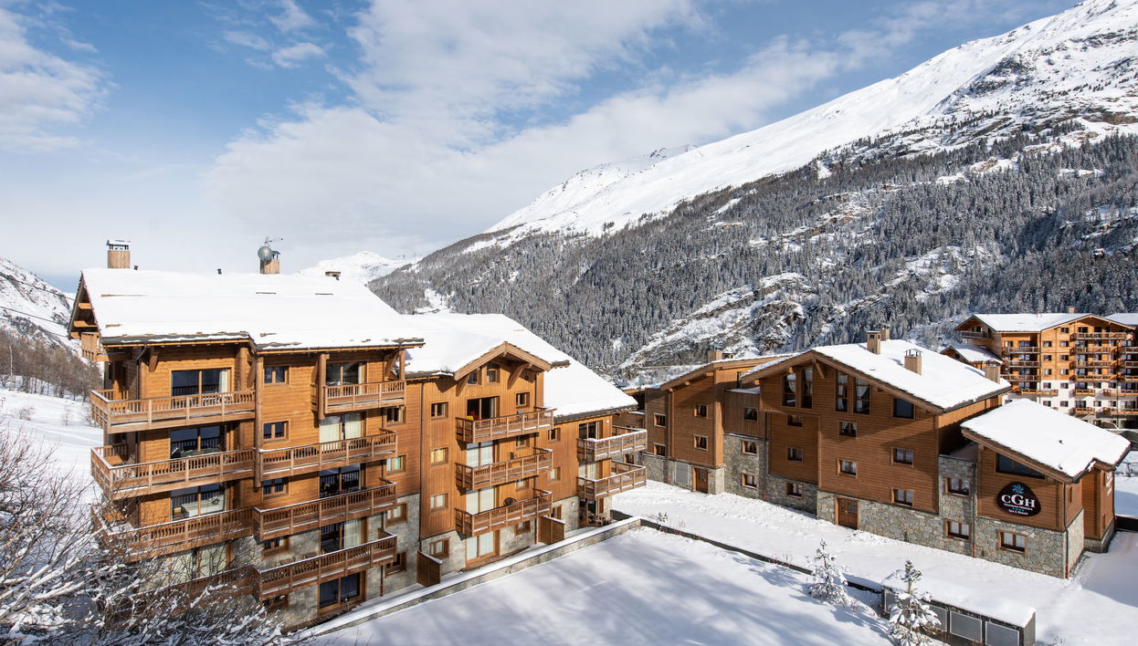 Les Boisses 5 km da Tignes: Residence "CGH Résidence&Spa Lodge des Neiges", piacevole, rustica, confortevole. 46 appartamenti nel residence. Nella frazione Tignes Les Boisses, a 5 km dal centro di Tignes Le Lac, a 400 m dal lago, direttamente nell'area sciistica. In comune: piscina coperta riscaldata. Piscina per bambini. Nella struttura: reception, sala comune, wifi, sauna, sala fitness, massaggio (extra). Bagno turco, vasca idromassaggio, ascensore, deposito sci, lavatrice (in comune, extra), asciuga scarponi. Ripostiglio disponibile. Autorimessa (extra). Parcheggio/garage solo per auto di piccola e media dimensione. Dimensione: altezza 200 cm. Supermercato 4 km, ristorante 100 m, stazione ferroviaria "Bourg Saint Maurice" 33 km, lago Lac du Chevril 400 m. Campo da golf (18 buche) 6.5 km, telecabina 100 m, piste da sci 100 m. Rinomate località sciistiche: Tignes – Val d'Isère (Espace Killy). Prego notare: dotazioni per bimbi su richiesta (incluso). La foto della casa va considerata come un esempio. Gli oggetti d'affitto possono differire in metratura, disposizione locali, dotazioni e arredamento.