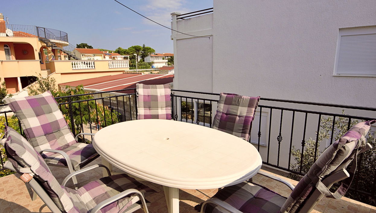 "Josip", apt. di 3 locali 55 m2 al 1. piano. Soggiorno/sala da pranzo con TV (satellite) e climatizzazione. 1 camera con 1 letto e 1 letto doppio. Uscita sul balcone. 1 camera con 2 letti.