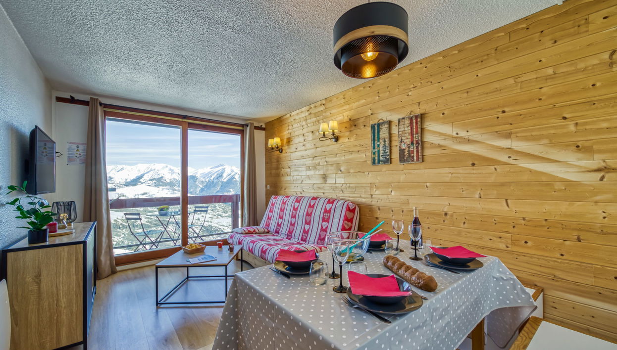 Monolocale 28 m2 al 12. piano, esposizione nord. In parte restaurato nel 2023, arredamento semplice e confortevole: soggiorno/sala da pranzo con 1 divano letto doppio (130 cm, lunghezza 190 cm), TV (schermo piatto). Uscita sul balcone, esposizione nord. Angolo notte con tenda, spogliatoio con 1 letto alla francese (140 cm, lunghezza 190 cm). Angolo cottura (mini-forno, tostapane, bollitore elettrico, forno a microonde, macchina da caffè elettrica, capsule per la macchina da caffè (dolce gusto) extra). Bagno, WC separato. Riscaldamento elettrico. Pavimenti in parquet. Balcone 4 m2, esposizione nord. Mobili da balcone. Vista sulle montagne e sulla valle. A disposizione: ferro da stiro, asciugacapelli. Internet (wifi, gratis). Prego notare: appartamento per non fumatori. Massimo 1 animale/cane consentito. Allarme antifumo. Uno o più posti letto adibiti a zona notte si trovano in area aperta o di passaggio (come soppalco, corridoio, alcova e simili). Annuncio di un proprietario privato ai sensi dell'articolo 155, IV, CGI.