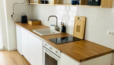 Questo appartamento con 1 camera da letto e aria condizionata presenta 1 bagno con bidet, doccia e set di cortesia. La cucina presenta frigorifero, forno e piano cottura, più macchina da caffè e bollitore elettrico.
